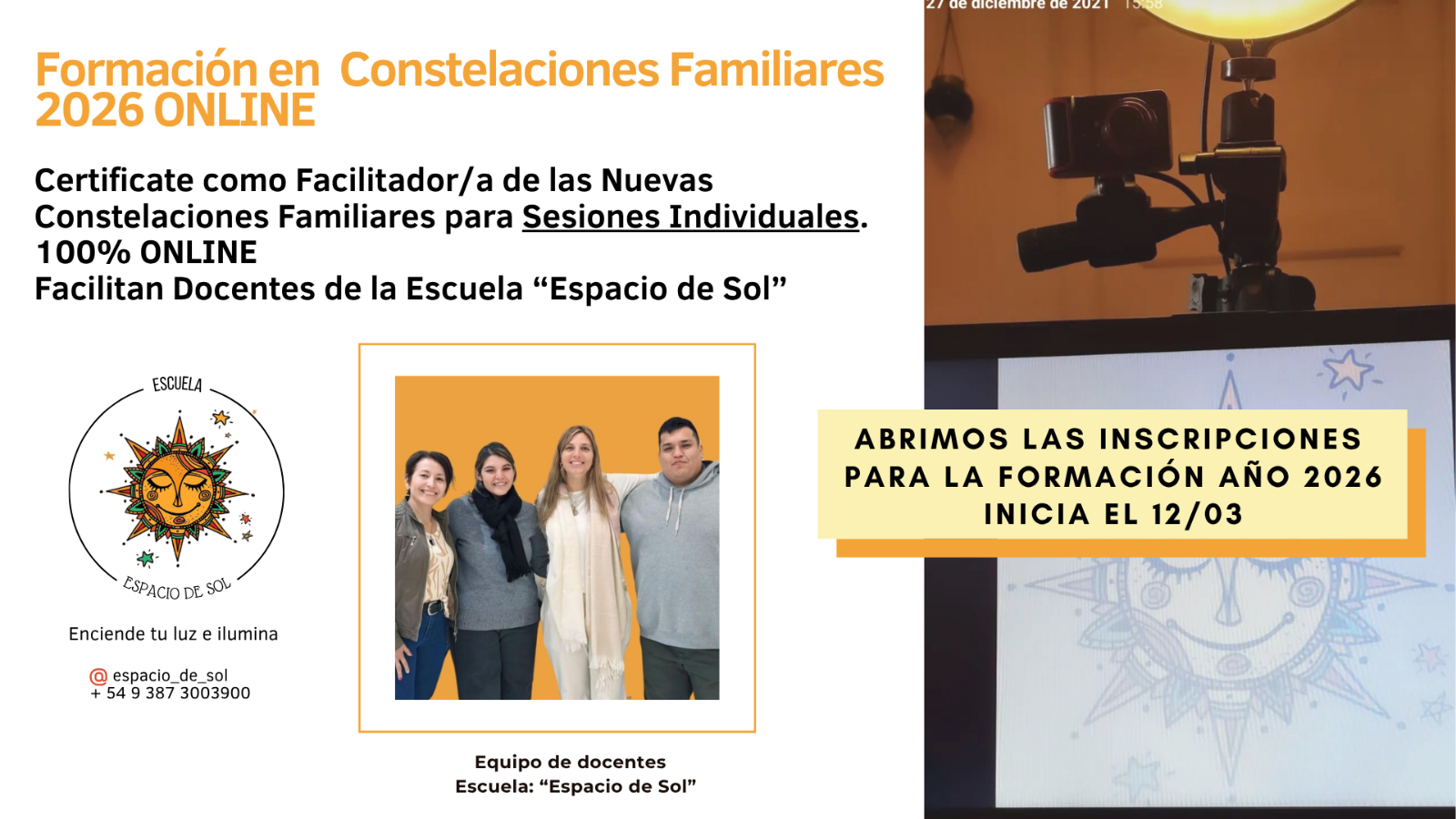 Un espacio abierto a todas las personas que deseen transformar su vida, sanar sus vínculos y descubrir su verdadero lugar desde la mirada sistémica y las Fuerzas del Amor. Esta formación te invita a un camino de autoconocimiento, coherencia y paz interior, donde podrás aplicar lo aprendido en tu vida personal, en tu profesión o acompañando a otros en sus procesos. Podrás tomarla como desarrollo personal o formarte como Facilitador/a en Sesiones Individuales de Constelaciones Familiares. Un recorrido para abrir el corazón, ampliar la consciencia y crear una vida más plena.